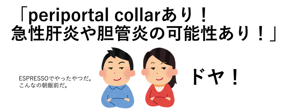 「periportal collarあり!急性肝炎や胆管炎の可能性あり!(ドヤ!)」