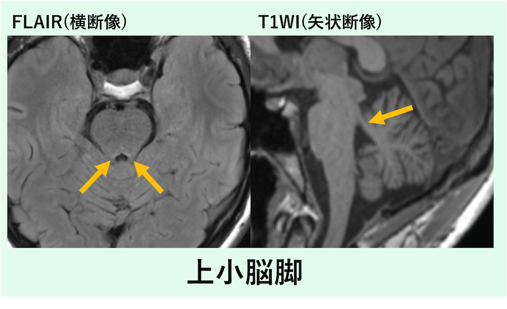 • 脱髄・炎症・腫瘍浸潤などでもSCPに沿ったT2/FLAIR高信号を取り得るため、「細い束に沿って連続するか」を意識すると読みやすい。