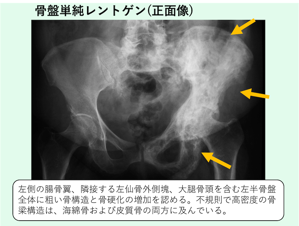 骨Paget病とは? 中年から高齢者に好発する。人口の1-2%。 原因は不明。パラミクソウイルスによるslow virus infectionや遺伝子異常とも言われる。骨吸収と骨形成の過程が互いに異常に進み(リモデリン […]
